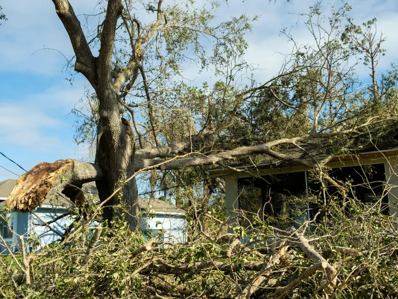 What should I do if a tree falls on my house?